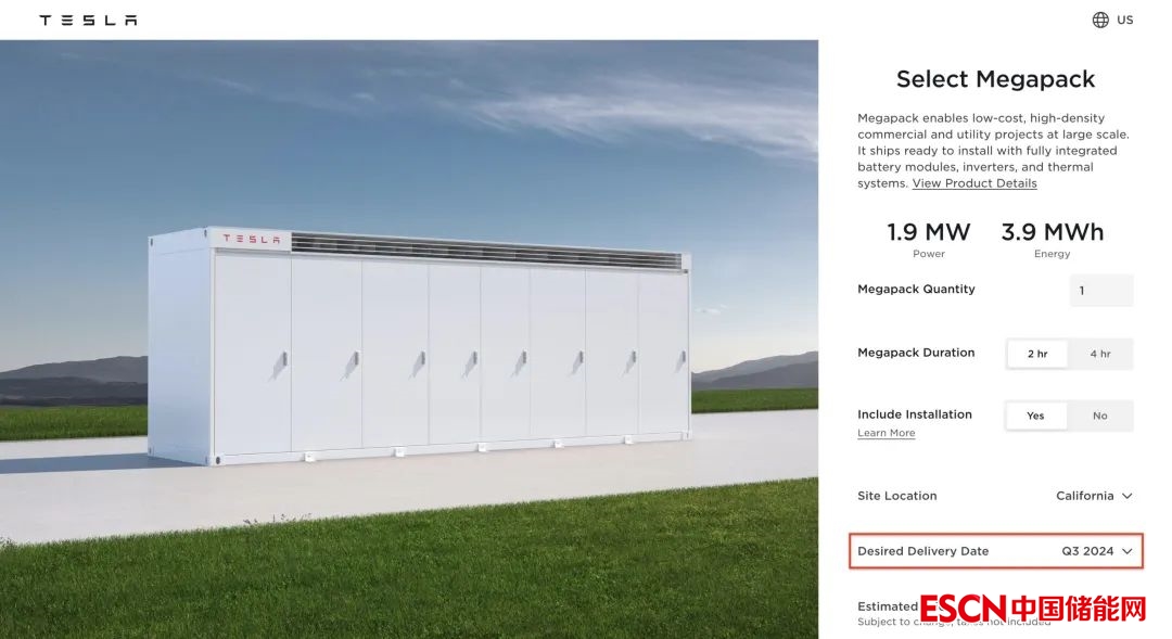 最新信息顯示,產(chǎn)地位于美國加利福尼亞的Megapack儲能系統(tǒng),預(yù)計交付時間已經(jīng)推遲到2024年第三季度,意味著特斯拉在此之前一年半的儲能產(chǎn)能均已售罄。