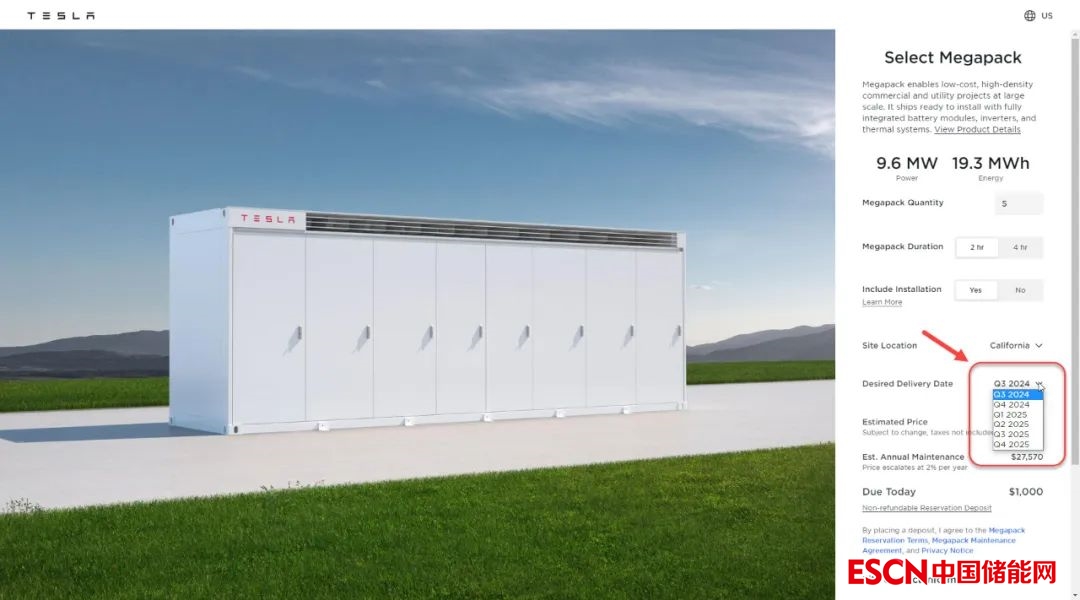 中國儲能網(wǎng)訊:近日,特斯拉官方網(wǎng)站顯示,其電池儲能系統(tǒng)Megapack訂單的最早預(yù)計交付日期將在2024年第三季度。