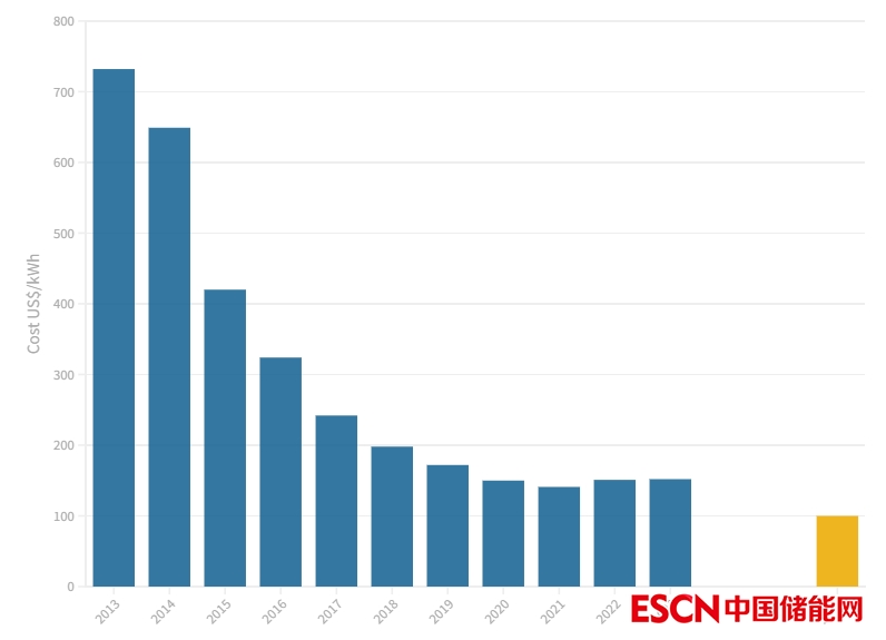 就在兩年前,彭博新能源財(cái)經(jīng)公司的研究團(tuán)隊(duì)在調(diào)查報(bào)告中預(yù)測電池的基準(zhǔn)價(jià)格將會(huì)低于100美元/kWh,并預(yù)測到2023年電池的平均成本將降至101美元/kWh。