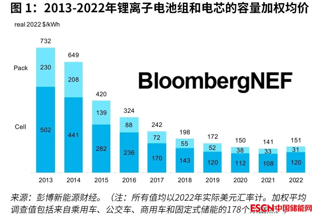 中國(guó)儲(chǔ)能網(wǎng)訊:鋰離子電池組價(jià)格由于原材料和電池零部件價(jià)格上漲和通脹飆升,出現(xiàn)了自彭博新能源財(cái)經(jīng)2010年開始跟蹤該市場(chǎng)以來(lái)的首次上漲。在經(jīng)歷十余年的下跌之后,所有細(xì)分市場(chǎng)的鋰離子電池組按容量加權(quán)平均的價(jià)格在2022年升至151美元/千瓦時(shí),較去年上漲7%。盡管如磷酸鐵鋰(LFP)等低成本材料體系在加速普及,但仍不足以抵消整體電池成本的上漲壓力。彭博新能源財(cái)經(jīng)預(yù)計(jì)明年價(jià)格將與今年持平,再次打破多年保持連續(xù)下降的趨勢(shì)。