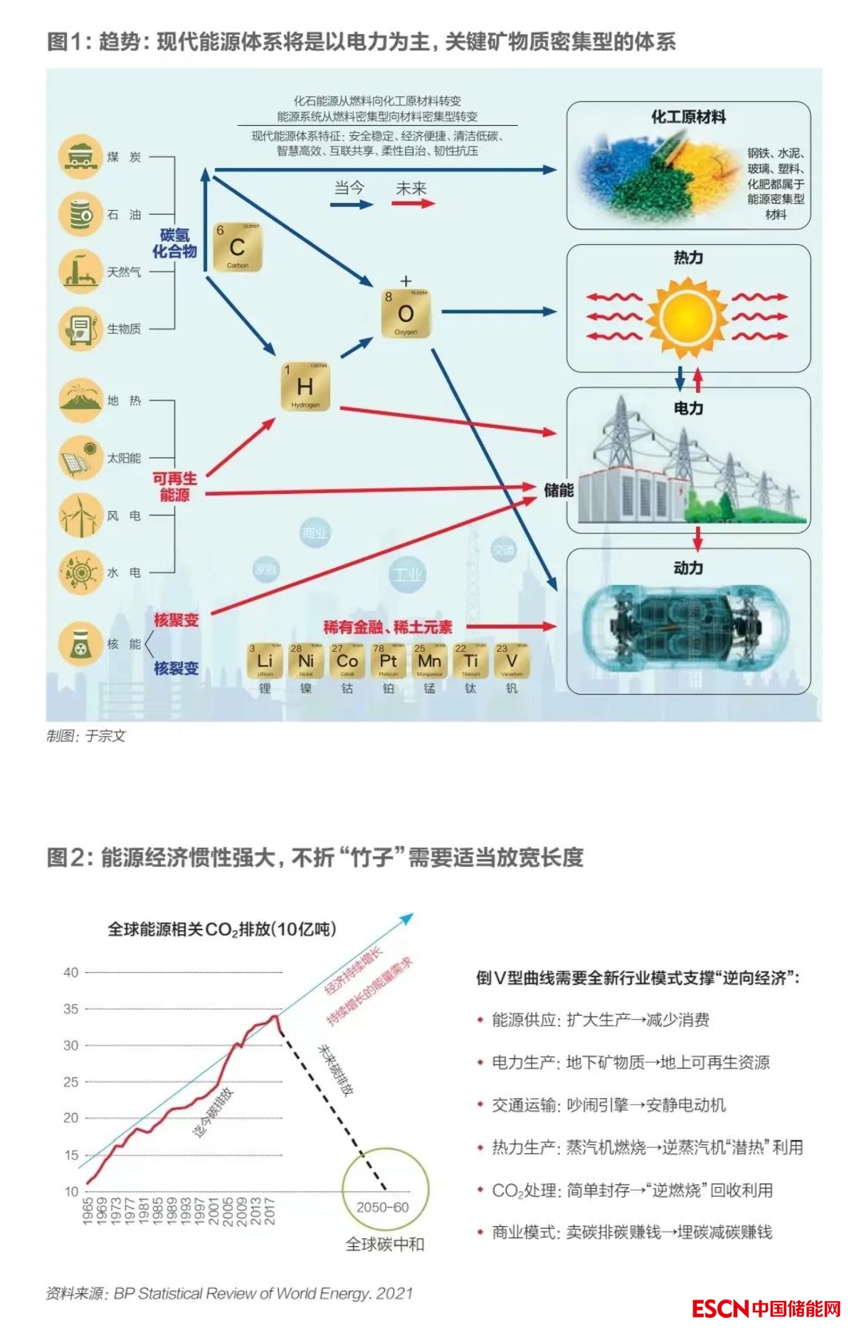 能源系統(tǒng)有三個攜帶能量的要素,一個是碳,一個是氫,另外一個是電子,這三個要素組成了現(xiàn)代能源體系。能源系統(tǒng)通過這三個要素提供的,不光是熱力、電力和動力,還提供原材料。原材料除了化工原材料之外,鋼鐵、水泥、玻璃、塑料、化肥也是能源密集型材料,一噸鋼鐵要半噸標準煤,一噸水泥起碼100公斤的標準煤。有人希望用氫能代替化石能源來生產(chǎn)這些材料,但現(xiàn)在既沒有成熟的技術,也沒有好的商業(yè)模式。現(xiàn)代能源體系里還有一個要素,就是稀有金屬,或者說是關鍵礦物質材料,它們對于能源系統(tǒng)轉型也是必不可少的。