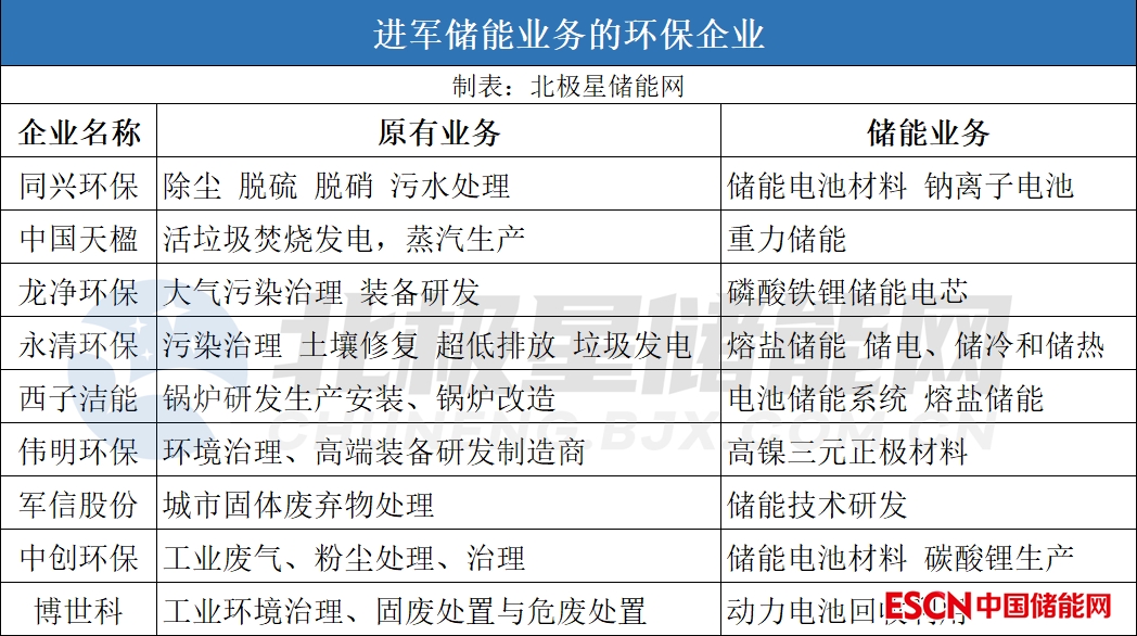 北極星儲(chǔ)能網(wǎng)觀察到,今年以來(lái),企業(yè)投資布局儲(chǔ)能熱情大增,已經(jīng)有幾十家家企業(yè)進(jìn)軍儲(chǔ)能。尤為值得注意的是,一批環(huán)保企業(yè)組團(tuán)跨界而來(lái),而且每家企業(yè)的具體入局方式,布局的儲(chǔ)能技術(shù)種類、以及儲(chǔ)能產(chǎn)業(yè)環(huán)節(jié)都各具特色。