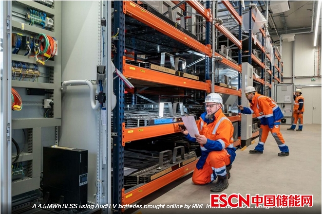 德國(guó)RWE公司在2022年1月開通運(yùn)營(yíng)4.5MWh梯次利用退役動(dòng)力電池儲(chǔ)能系統(tǒng)