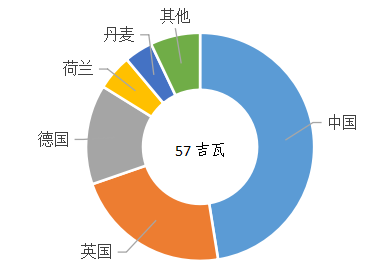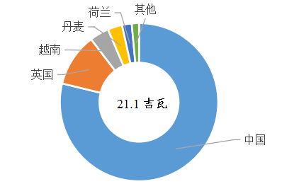 圖2 2021年各國(guó)海上風(fēng)電新增裝機(jī)占比情況