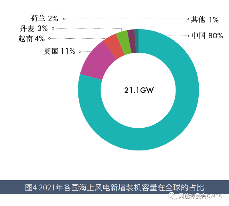 圖4 2021年各國海上風電新增裝機容量在全球的占比