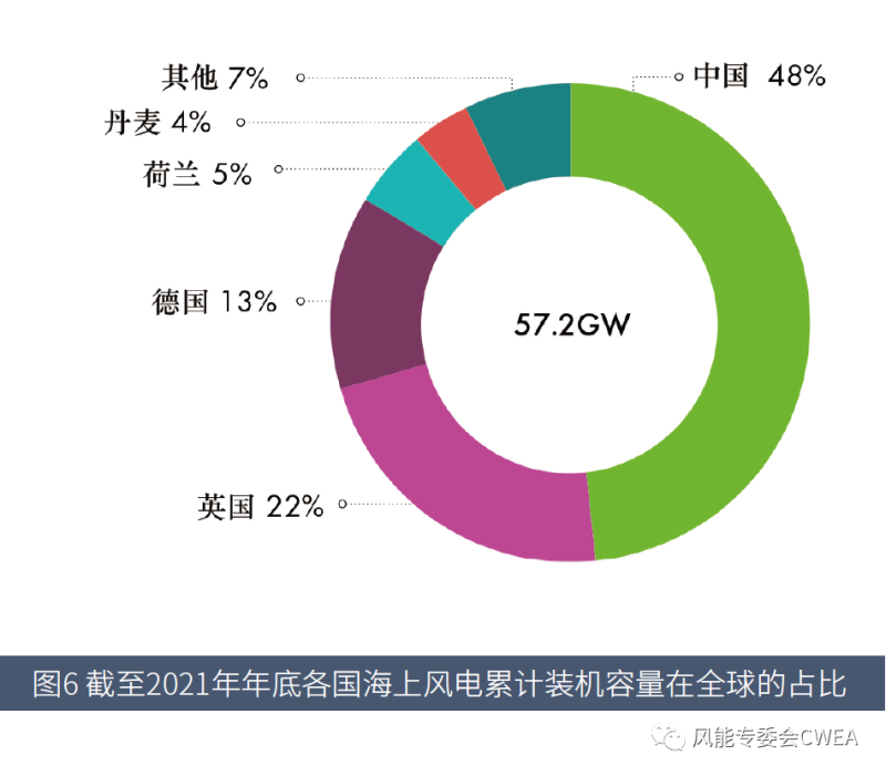 圖6 截至2021年年底各國海上風電累計裝機容量在全球的占比