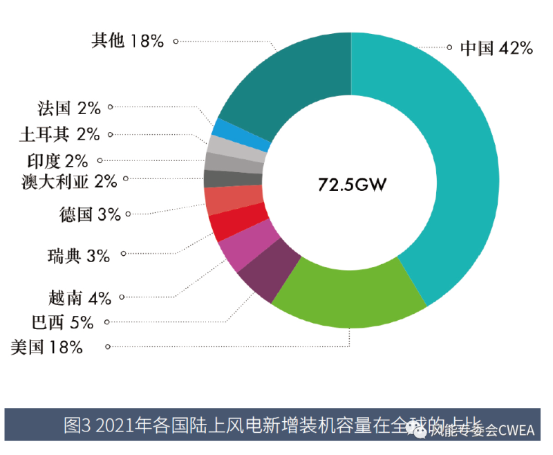 圖3 2021年各國陸上風電新增裝機容量在全球的占比