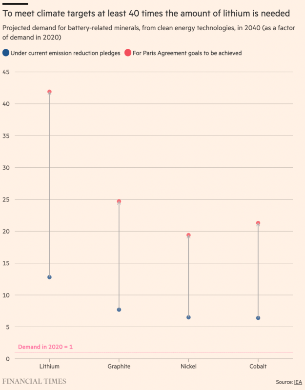 美國(guó)電動(dòng)汽車電池行業(yè)是拜登總統(tǒng)創(chuàng)建更綠色、更創(chuàng)新經(jīng)濟(jì)計(jì)劃的核心,決心擴(kuò)大國(guó)內(nèi)對(duì)綠色技術(shù)所依賴的礦產(chǎn)的開(kāi)采。3月底,拜登政府援引朝鮮戰(zhàn)爭(zhēng)時(shí)期的《國(guó)防生產(chǎn)法》,騰出更多資金用于幫助國(guó)內(nèi)開(kāi)采鋰、鈷、鎳、石墨和錳,其中鋰可能是美國(guó)最大的機(jī)會(huì)。國(guó)際能源署稱,隨著世界從石油和天然氣向綠色能源電網(wǎng)過(guò)渡,鋰是需求增長(zhǎng)最快的礦物。如果世界要實(shí)現(xiàn)巴黎協(xié)議中設(shè)定的全球氣候目標(biāo),到2040年,鋰的需求量將至少是今天的40倍。