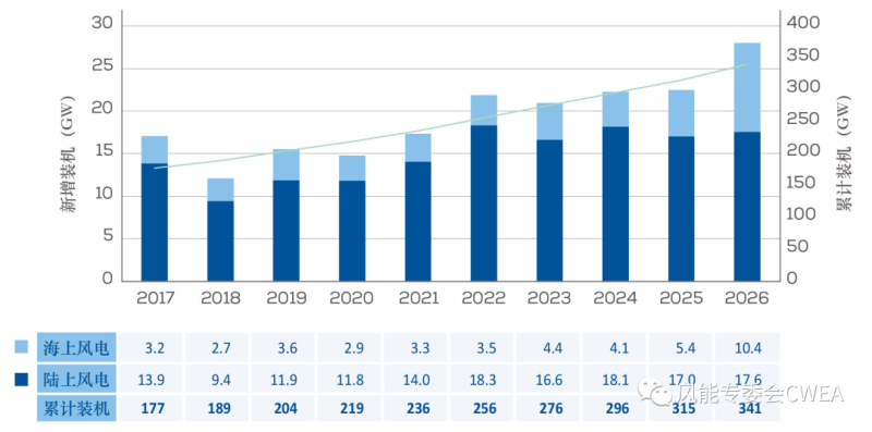 德國(guó)、西班牙和英國(guó)的陸上風(fēng)電新增裝機(jī)容量有望保持快速增長(zhǎng),但由于瑞典、芬蘭新增裝機(jī)規(guī)模的下滑,使得2023―2026年歐洲陸上風(fēng)電年度新增裝機(jī)容量將基本持平。