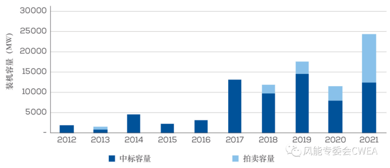圖8 2012—2021年歐洲風(fēng)電拍賣(mài)與投標(biāo)情況