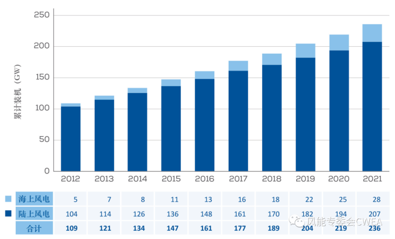 截至2021年年底,歐洲風(fēng)電累計(jì)裝機(jī)容量達(dá)到236GW。其中,歐盟國(guó)家合計(jì)為189GW。