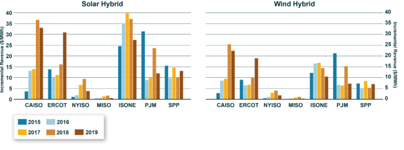 圖9.太陽(yáng)能和風(fēng)能混合項(xiàng)目的輔助服務(wù)增量收入(美元/MWh)