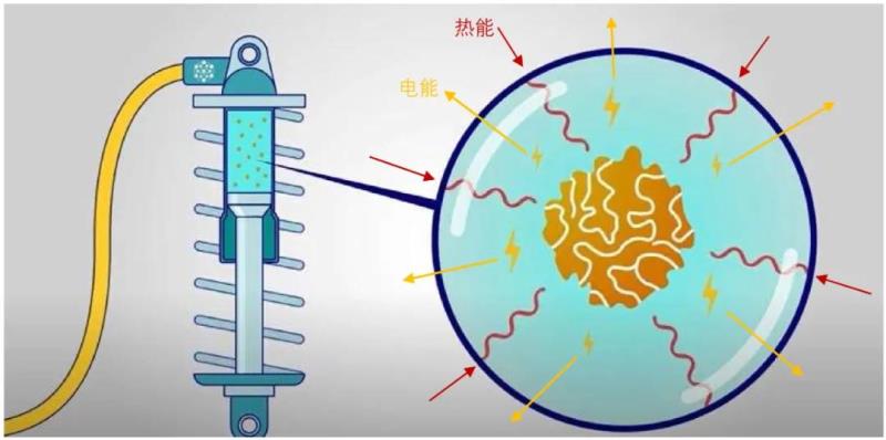在歐盟“地平線2020”科研創(chuàng)新計(jì)劃框架的支持下,來自西班牙、意大利、英國、波蘭、烏克蘭的學(xué)者們?cè)贓lectro-Intrusion項(xiàng)目[5,6,7]中共同提出了一種類似于熱泵的概念,以阻尼器所承受的機(jī)械緩沖作為誘引,將周圍環(huán)境的熱能轉(zhuǎn)換為電能輸出,這樣即可通過“開源”的方式大大提高能量的輸出/輸入比,甚至能夠達(dá)到輸出電能與輸入機(jī)械能的比例高于100%的水平!同時(shí),此概念下無需對(duì)目前成熟的商用阻尼器進(jìn)行結(jié)構(gòu)顛覆性修改,只需要低成本地替換內(nèi)部油液種類和摻雜顆粒即可。