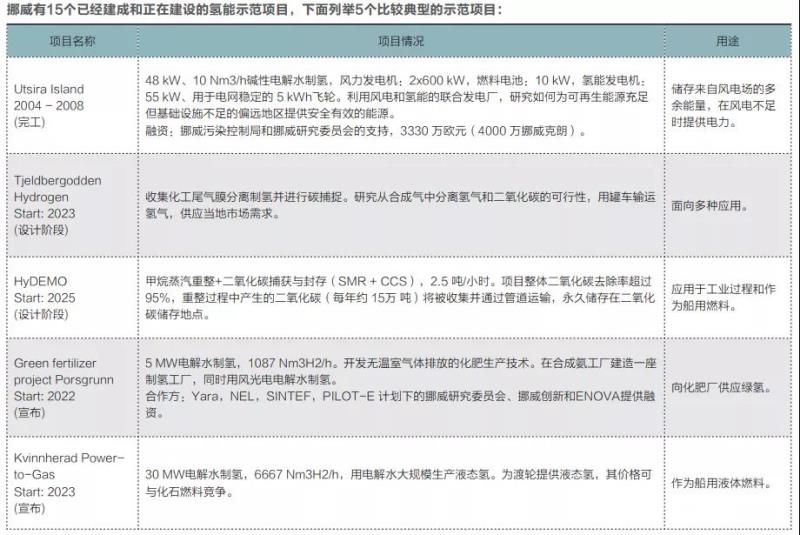 2020年12月,挪威等歐盟國(guó)家呼吁并發(fā)起了一些促進(jìn)歐洲氫能經(jīng)濟(jì)的共同利益項(xiàng)目。其中包括歐洲最大鋼鐵廠杜伊斯堡-沃爾蘇姆 (德國(guó))的500 MW電解水制氫項(xiàng)目計(jì)劃,塞納河畔杰羅姆港(法國(guó))的化學(xué)工廠的200 MW電解水制氫項(xiàng)目計(jì)劃,漢堡-摩爾堡的200 MW電解水制氫項(xiàng)目和一個(gè)氫燃?xì)廨啓C(jī)研發(fā)計(jì)劃,以及 Chaleroi(比利時(shí))石灰窯的75 MW 電解水制氫項(xiàng)目。
