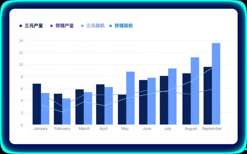 產(chǎn)量方面9月三元電池產(chǎn)量9.63GWh,占總產(chǎn)量 41.56%;磷酸鐵鋰電池產(chǎn)量 13.51GWh,占總產(chǎn)量58.31%,這是連續(xù)第五個(gè)月磷酸鐵鋰電池產(chǎn)量超過(guò)三元電池。中國(guó)正是領(lǐng)先全球做了一次探索性的實(shí)驗(yàn)來(lái)確認(rèn)技術(shù)路線的更迭。
