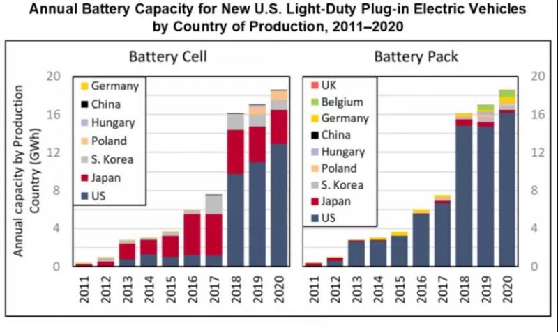 在過去三年,美國主機廠電池組和PACK的本土化生產(chǎn)率達到87%,進口汽車的動力電池則由日韓電池負責。