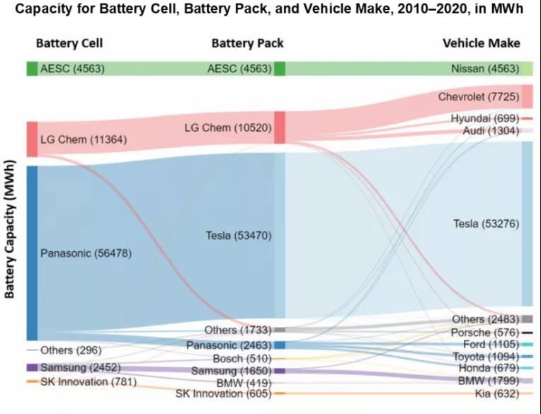 來源:周焱,David Gohlke, Luke Rush, Jarod Kelly, and Qiang Dai(2021) 2010-2020年美國電動汽車鋰離子電池供應鏈。阿貢國家實驗室ANL/ESD-21/3。圖ES-1。