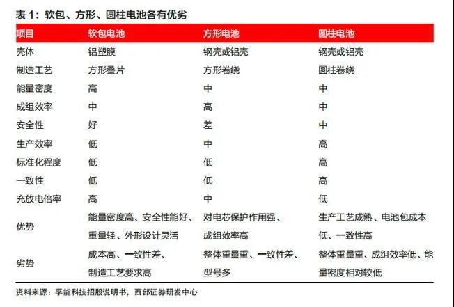 需要指出的是,此前業(yè)內(nèi)以及機構曾指出,圓柱、方形、軟包三種路線各有優(yōu)勢,現(xiàn)階段絕對優(yōu)勢尚不明顯: