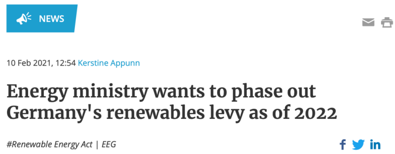 2021年版的《可再生能源法》(EEG)啟動了向可再生能源生產(chǎn)商支付上網(wǎng)電價的法律,該電價部分由EEG附加費支付。EEG附加費今年上限為6.5美分,明年上限為6美分,預(yù)計到2027年取消。此外,為了進(jìn)一步減輕電力消費者的經(jīng)濟(jì)負(fù)擔(dān),自2021年1月起,德國要求取暖和運輸?shù)哪茉聪M者支付二氧化碳價格。