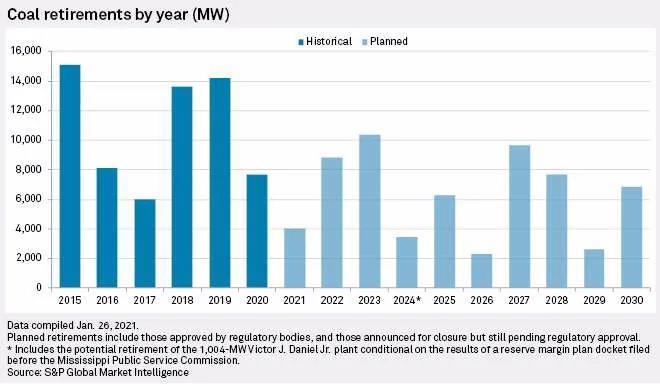 中國儲能網(wǎng)訊:據(jù)標(biāo)準(zhǔn)普爾全球市場情報的報道,近年來,市場力量、投資者偏好和環(huán)境政策推動了美國煤電的衰落,并將可能繼續(xù)促使關(guān)閉。即便沒有政策干預(yù)的情況下,美國最后一家發(fā)電廠可能在未來15年關(guān)閉。