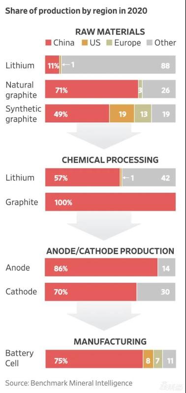 不過,《華爾街日報(bào)》分析稱,美國鋰離子電池關(guān)鍵原料基本都依賴進(jìn)口,鋰金屬、石墨的產(chǎn)量很少。
