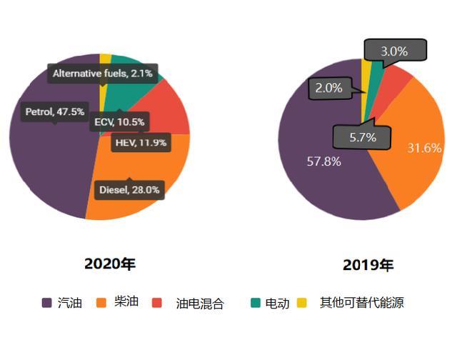 但電動汽車市場卻是另外一番繁榮景象。根據(jù)歐洲汽車制造商協(xié)會(ACEA)4日公布的數(shù)據(jù),2020年第四季度,歐盟新注冊的電動汽車(純電動和插電式混動,下同)占全部乘用車注冊量的16.5%,2019年同期僅為4.2%。2020年全年,電動汽車新車注冊量占比從上年的3.0%提高到10.5%,加上油電混合動力等清潔能源車的總占比達(dá)到24.5%,同比增加近14個百分點。其中,電動汽車銷量以德、法市場增長最快。