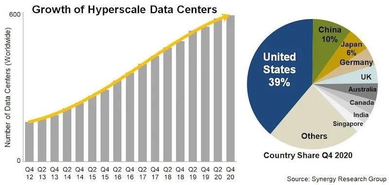 中國儲(chǔ)能網(wǎng)訊:根據(jù)SynergyResearchGroup的最新數(shù)據(jù),截至2020年底,超規(guī)模提供商擁有的大型數(shù)據(jù)中心總數(shù)增至597個(gè),是2015年數(shù)據(jù)中心數(shù)量的兩倍。