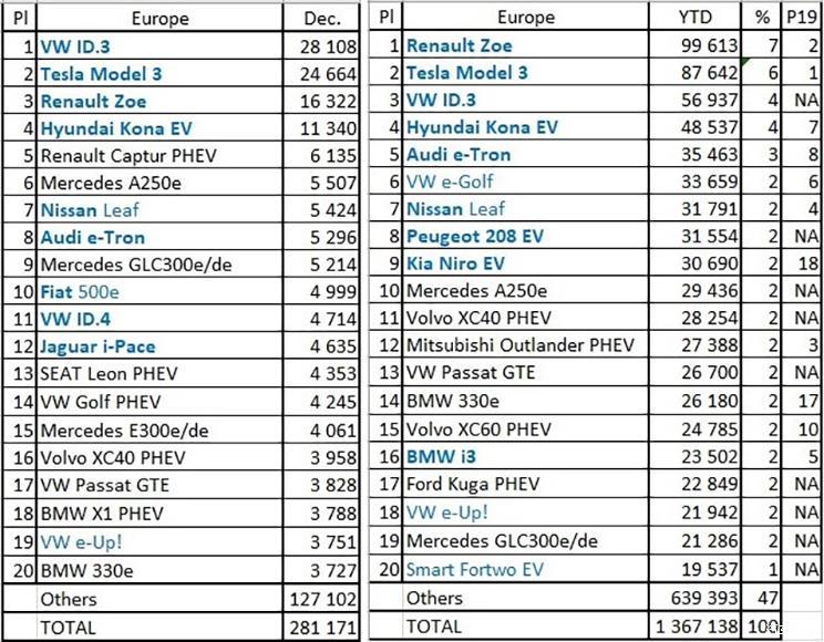 從車型上來看,在12月大眾ID.3后來居上,一舉超越特斯拉Model 3和雷諾ZOE奪得銷量冠軍,展示出了大眾MEB平臺新車強勁的競爭力。2020年全年,歐洲老牌暢銷純電動車?yán)字ZZOE依然以近10萬臺的銷量成績占據(jù)榜首,緊隨其后的分別為特斯拉Model 3、大眾 ID.3和現(xiàn)代KONA EV。(文/汽車之家 李娜)
