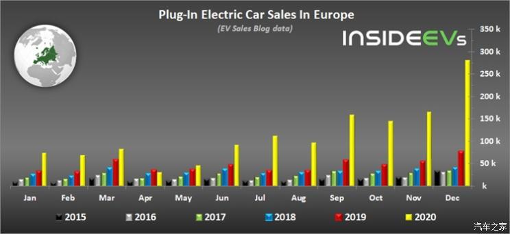 具體而言,在2020年12月歐洲登記的新能源乘用車銷量達到281171輛,同比增長了254%,并占到當(dāng)月歐洲市場總銷量的23%。