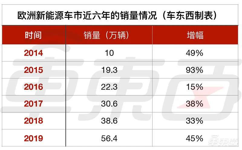 事實(shí)上,近6年來,歐洲市場(chǎng)的新能源汽車銷量正在穩(wěn)步增長。EV Sales數(shù)據(jù)顯示,歐洲電動(dòng)汽車的銷量在6年間,從10萬輛增長到了56.4萬輛,翻了五番。