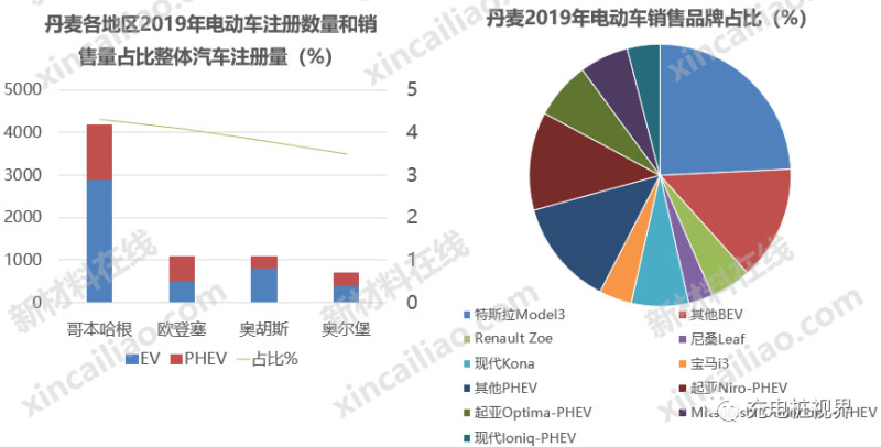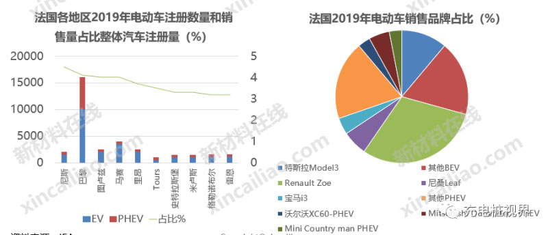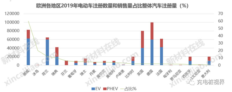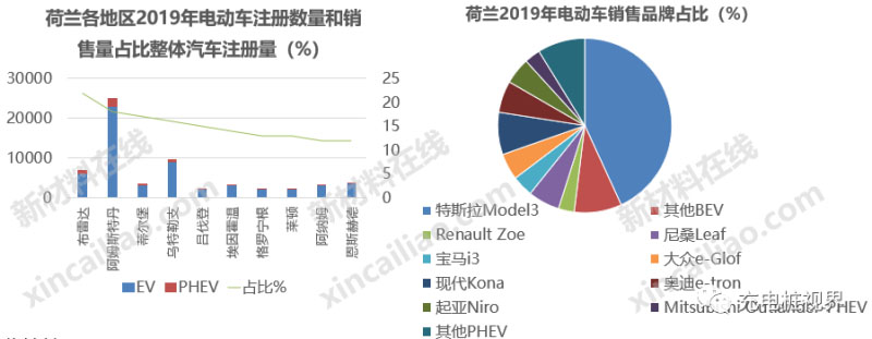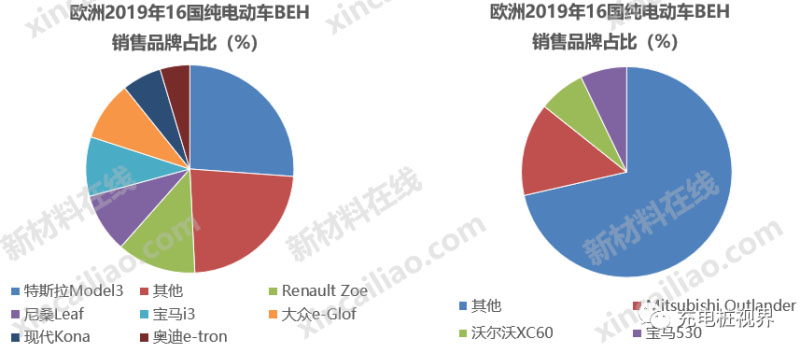 電動汽車(BEV)和插電式混合動力電動汽車(PHEV)銷量的相對平均分配。只有瑞典,芬蘭,冰島和希臘的插電式混合動力汽車的銷量超過了純電動汽車。 在7款最暢銷的電動汽車中,有6款是BEV,其中以Tesla Model 3領(lǐng)先,該電動車在其歐洲首個全年銷售中就占電動汽車銷量的17%。