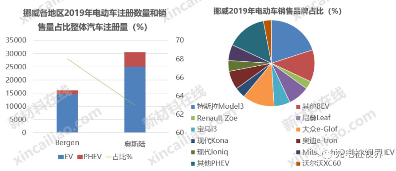 奧斯陸和卑爾根是該國兩個最大的大都市地區(qū),其電動汽車注冊份額通常高于全國平均水平,在2019年分別達到64%和67%。