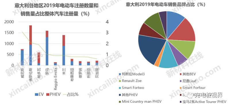 盡管是歐洲第四大汽車市場,意大利的消費者在采用電動汽車方面進展緩慢,導(dǎo)致該國在2019年的銷售份額不到1%。 意大利中央政府為BEV提供4,000歐元的購車補貼,為大多數(shù)PHEV提供2500歐元的購車補貼。該國還免除了電動汽車的年度所有權(quán)稅,并且一些地區(qū)提供了額外的稅收優(yōu)惠。