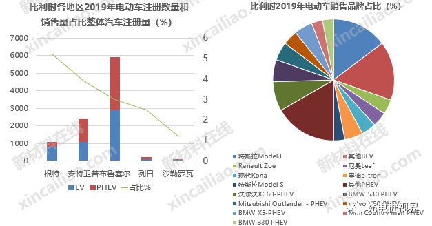 比利時的電動汽車銷量從2018年到2019年增長了30%。 繼以PHEV為重點的市場經(jīng)歷了數(shù)年之后,比利時的2019年電動汽車銷售在BEV和PHEV之間平均分配。