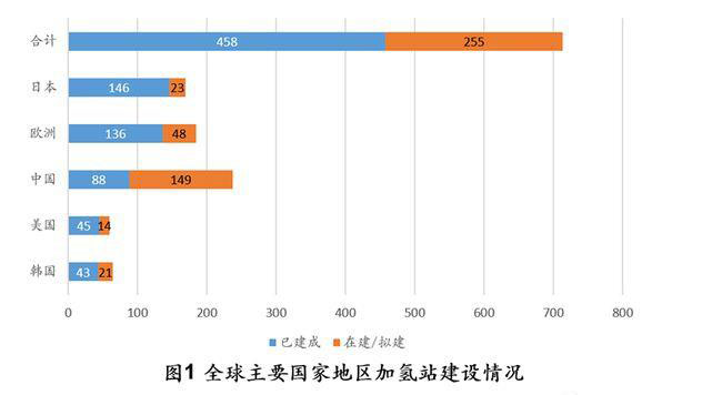 分別來看,日本累計建成146座加氫站,數(shù)量位居全球第一。歐洲共有136座加氫站,其中87座位于德國。我國共建成88座加氫站,數(shù)量超過德國成為世界第二,另有149座在建或規(guī)劃當中的加氫站。美國全國共有45座加氫站,其中44座位于加利福尼亞州,加州另有21座在建和擬建的加氫站。韓國現(xiàn)有43座加氫站及21座在建和擬建的加氫站。