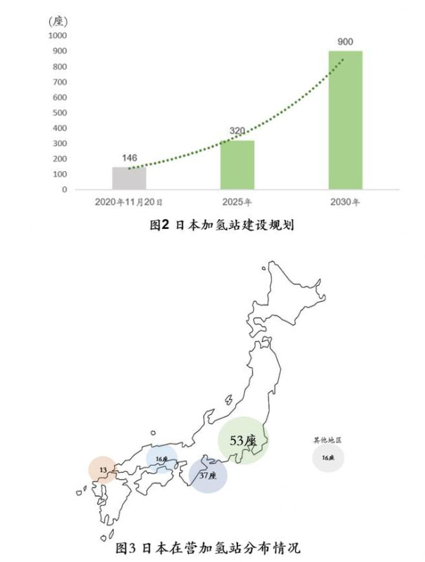 日本政府在2019年3月公布的《氫能利用進度表》中提出,計劃于2025年建成320座商業(yè)化加氫站,到2030年建成900座。