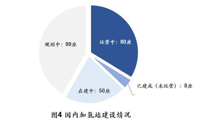 據(jù)香橙會研究院統(tǒng)計,截止2020年11月21日我國累計建成88座加氫站,較去年年底新增27座。其中已投入運營的有80座,另有50座正在建設當中,還有99座正在規(guī)劃中的加氫站?!吨袊鴼淠墚a業(yè)基礎設施發(fā)展藍皮書》提出,到2020年我國加氫站數(shù)量將達到100座,到2030年建成1000座。