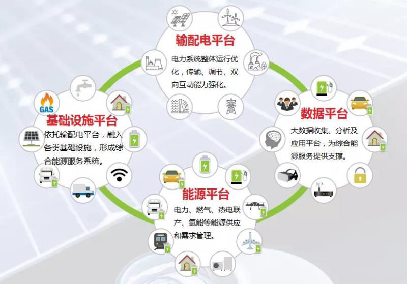 能源平臺(tái)融合電力、燃?xì)狻犭娐?lián)產(chǎn)、氫能、蓄電池、基于電動(dòng)汽車的移動(dòng)儲(chǔ)能等多種能源設(shè)施,實(shí)現(xiàn)多能互補(bǔ)、合理共享,是以電為中心的輸配電平臺(tái)在其他能源領(lǐng)域的延伸。