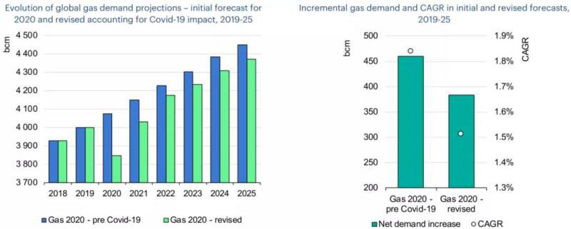 IEA預(yù)計(jì),2021年全球天然氣需求將逐步復(fù)蘇,但疫情的影響是長期的,天然氣需求增長受各種不確定因素影響。到2025年,全球天然氣需求預(yù)計(jì)每年僅增長1.5%,低于IEA此前1.8%的預(yù)期。疫情的影響將導(dǎo)致到2025年的需求損失達(dá)750億立方米/年,這與2019年全球需求的年增長相同。