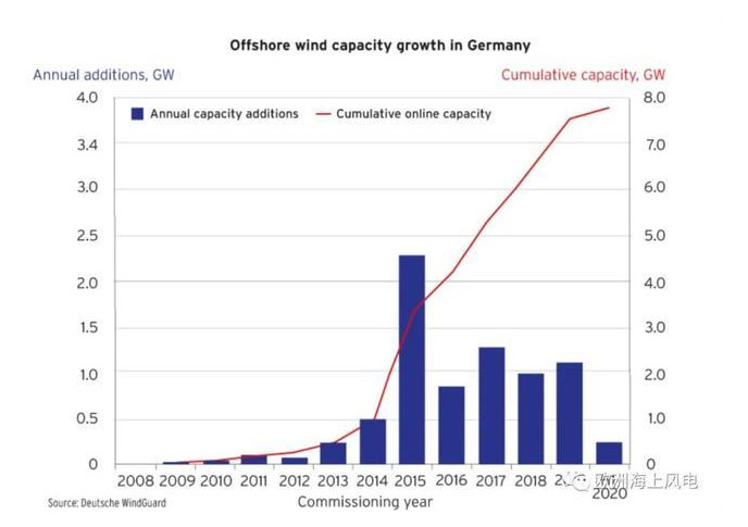 下一批將要并網(wǎng)的海上風(fēng)電場(chǎng)是在2017年和2018年招標(biāo)的,并網(wǎng)時(shí)間是2021年至2025年。而自2019年起,德國(guó)就沒有進(jìn)行過海上風(fēng)電招標(biāo)。