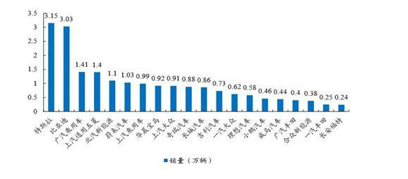 圖2 1-5月國內(nèi)新能源汽車銷量排名