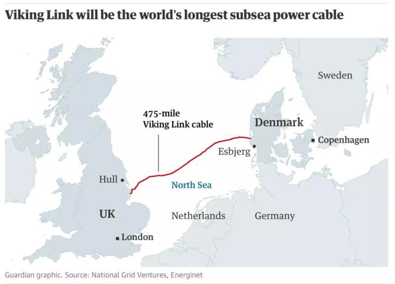 據(jù)英國(guó)《衛(wèi)報(bào)》報(bào)道,世界上最長(zhǎng)的海底電纜已在英國(guó)林肯郡動(dòng)工。這條被稱為“維京鏈接”(Viking Link)的直流海底電纜將連接英國(guó)林肯郡比克芬和丹麥南日德蘭地區(qū),以共享兩國(guó)之間的可再生能源。