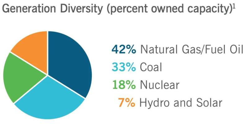 杜克能源2019年收入超過(guò)250億美元,其發(fā)電組成:天然氣占42%,煤電占比33%,核電占18%,水電和太陽(yáng)能占7%。