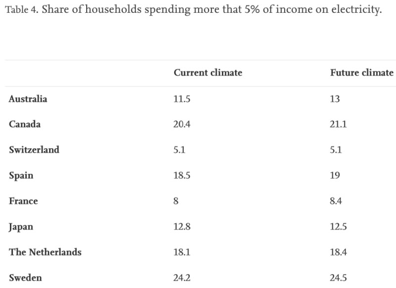 這項(xiàng)研究以澳大利亞、加拿大、法國、日本、荷蘭、西班牙、瑞典和瑞士等8個(gè)國家為案例,調(diào)查了普通家庭的空調(diào)需求。研究發(fā)現(xiàn),近年來購買和使用空調(diào)的人數(shù)有所增加,這導(dǎo)致了更大的電力消耗,導(dǎo)致電費(fèi)支出增加35%到42%。這給那些可能買不起高效電器的家庭增加了額外的負(fù)擔(dān),并可能導(dǎo)致支出從食品或教育轉(zhuǎn)向空調(diào)。