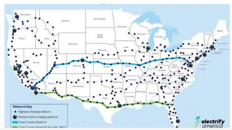 Electrify America表示,隨著新路線的完成,電動汽車車主可以使用美國最大的開放式直流快速充電網(wǎng)絡(luò)在全國各地旅行。新的充電路線橫跨11個州,司機(jī)從洛杉磯到華盛頓特區(qū)行駛2700英里,70千瓦的線路和提供高達(dá)350千瓦的跨州高速充電器。
