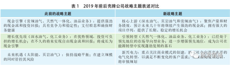 2019年6月,殼牌公司對(duì)業(yè)務(wù)組合的戰(zhàn)略主題進(jìn)行了調(diào)整,確保其業(yè)務(wù)組合能夠很好地適應(yīng)未來(lái)發(fā)展環(huán)境(見(jiàn)表1)。新的戰(zhàn)略主題表述,聚焦于有助于推進(jìn)公司能源轉(zhuǎn)型的領(lǐng)域,以及未來(lái)十年需求保持增長(zhǎng)的領(lǐng)域。殼牌將繼續(xù)發(fā)展油氣業(yè)務(wù),包括深水和頁(yè)巖油氣,以滿足需求增長(zhǎng),通過(guò)提供石油、天然氣和低碳能源,強(qiáng)化其在油氣行業(yè)中的領(lǐng)先地位。