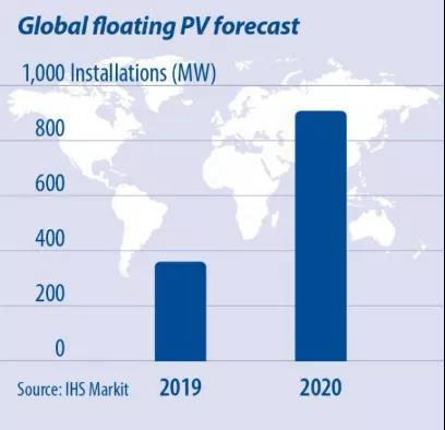 根據(jù)IHS Markit的《2020年漂浮光伏報(bào)告》,今年全球漂浮式光伏發(fā)電容量將比2019年增長(zhǎng)143%,超過(guò)900MW,尤其是近年來(lái)中國(guó)、韓國(guó)、日本和荷蘭等國(guó)安裝的漂浮電站系統(tǒng)數(shù)量猛增,推動(dòng)了全球市場(chǎng)的增長(zhǎng),截止2019年底,全球總裝機(jī)容量大約在1.5GW左右。
