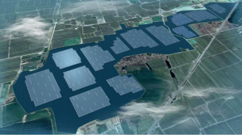 圖片:一個(gè)位于中國(guó)安徽省的正在建設(shè)中的70MW漂浮太陽(yáng)能電站SGI圖形