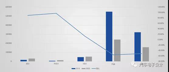 2)因此從統(tǒng)計上,純電動同比增長89.24%,從1.65萬臺達到了3.12萬臺;PHEV同比增長96.98%,從6556臺上漲到了12914臺;而混合動力汽車也保持了13%的增長,維持在了5.26萬臺。而柴油車和汽油車分別下降了51.5%和56%。