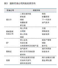 國(guó)際石油公司對(duì)與公司主業(yè)聯(lián)系緊密、前景明確的可再生能源業(yè)務(wù),進(jìn)行兼并購(gòu)或資產(chǎn)投資;對(duì)暫時(shí)與公司主業(yè)關(guān)聯(lián)度較低或不確定性較強(qiáng)的可再生能源業(yè)務(wù),進(jìn)行風(fēng)險(xiǎn)投資;對(duì)前沿可再生能源技術(shù)領(lǐng)域,進(jìn)行研發(fā)投入。